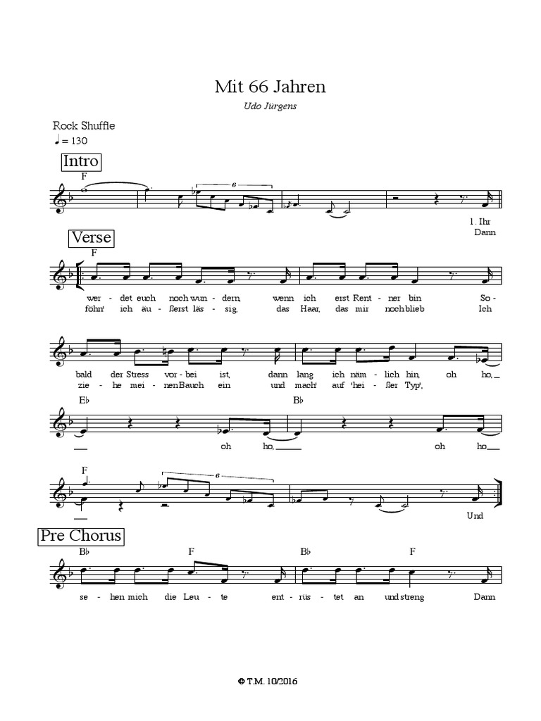 Mit 66 Jahren Udo Jurgens Leadsheet
